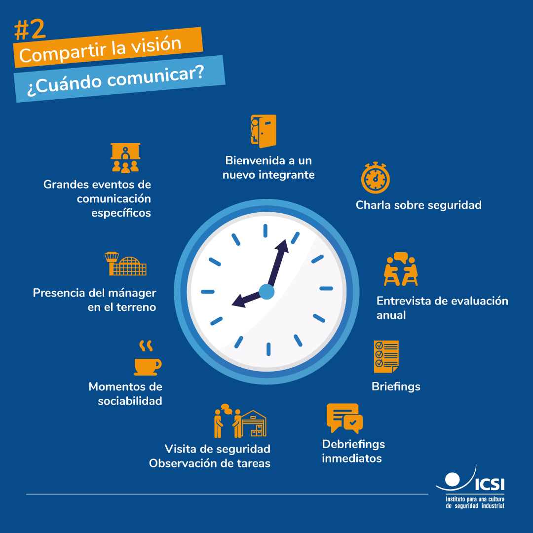 Cada momento en el terreno se convierte así en una oportunidad para hablar de los eventos o de las novedades en materia de seguridad, para aprender de ellos, para conversar sobre un riesgo específico, para intercambiar información sobre las modificaciones y las decisiones que afectan a la seguridad de los equipos, para hablar de una experiencia personal que nos afecta y que puede afectar a nuestros colegas.